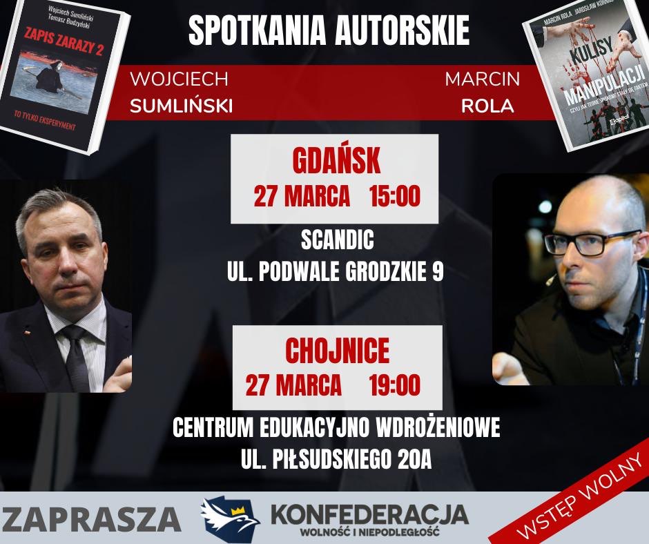 Zapraszamy Wszystkich na spotkanie autorskie z Wojciechem Sumlińskim i Marcinem Rolą w dniu 27 marca o godzinie 15:00 w Gdańsku (Scandic) oraz na godzinę 19:00 w Chojnicach (Centrum Edukacyjno