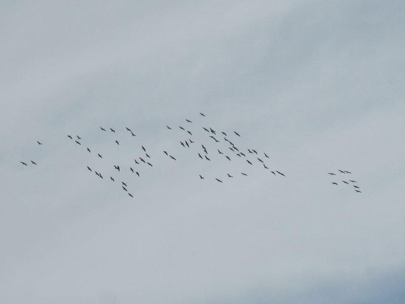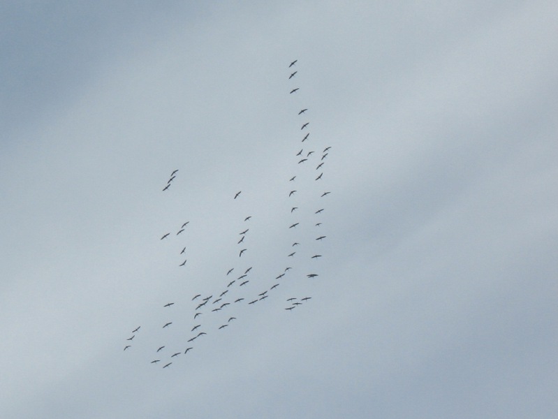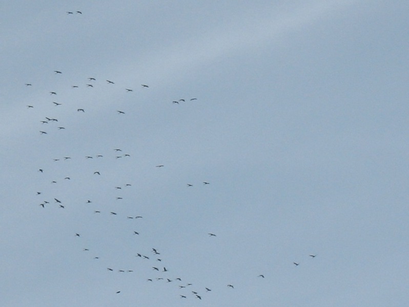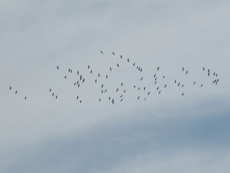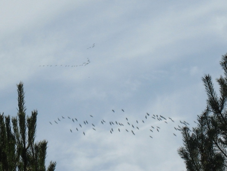 Żurawie rozpoczęły odloty przed zimą (25 wrzesień 2011). Przed zimnymi nocami kierują się na południe do Morza Śródziemnego i Afryki Północnej.