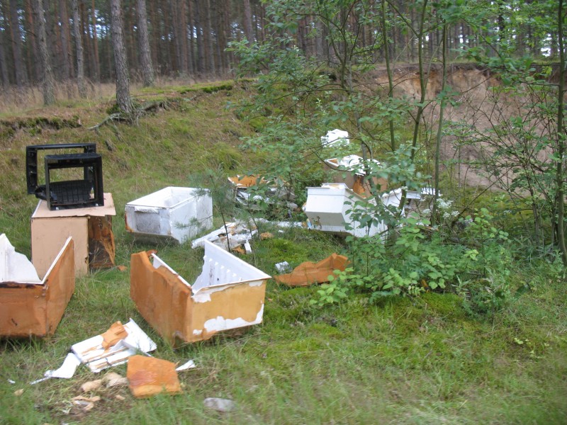 Z końcem czerwca zauważono tu wywieziony sprzęt AGD. Został umyślnie pozostawiony w lesie zamiast trafić na bezpłatną zbiórkę jak ta, która najbliższa zaczyna się od 22 do 24 września 2011 r. w godz. 10:00 – 18:00 na terenie Zakładu Gospodarki Komunalnej w Brusach.