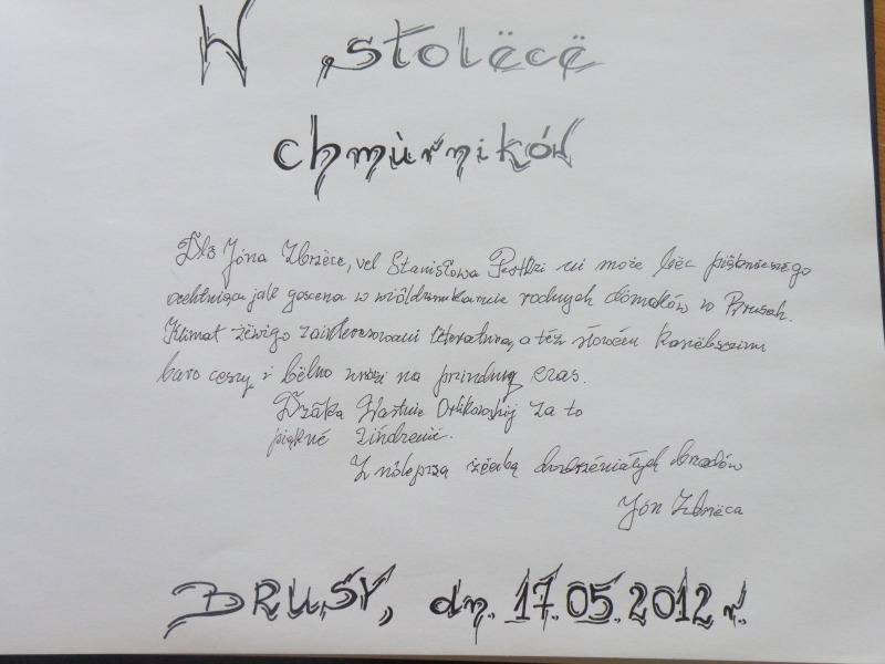 Dnia 17.05.2012 r. w Centrum Kultury i Biblioteki im. Jana Karnowskiego w Brusach odbyło się spotkanie autorskie połączone z promocją najnowszej książki Stanisława Pestki pt. „W stolëcë chmùrników”, podpisujący kaszubskie teksty pseudonimem Jan Zbrzyca.