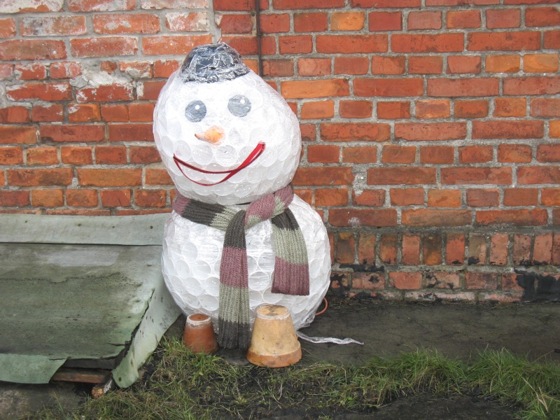Rok 2013 rozpoczął się ciepło bo temperaturą jest zbyt wysoka powyżej zera aby mógł utrzymać się śnieg. Wypada jednak by w zimie ulepić jakiegoś bałwana i oto