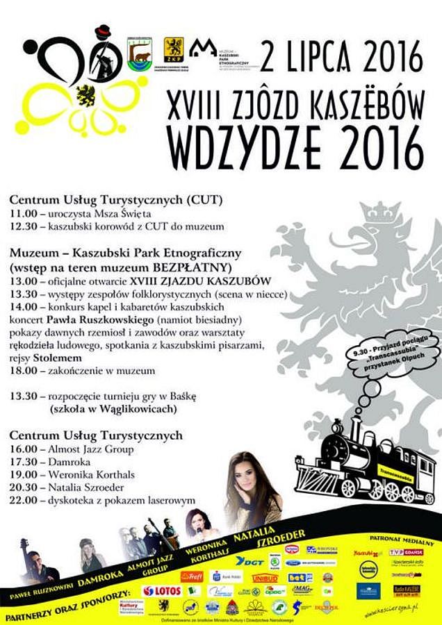W tym roku Zjazd Kaszubów odbędzie się 2 lipca we Wdzydzach na terenie Muzeum-Kaszubskiego Parku Etnograficznego im. Izydora i Teodory Gulgowskich. Wszyscy którzy pojawią się 2 lipca we Wdzydzach, będą mogli posłuchać dobrej muzyki w wykonaniu kapel ludowych, oraz pośmiać się z kabaretami kaszubskimi. Nie zabraknie również kaszubskich rękodzielników z najdalszych zakątków regionu.